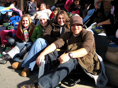 I have officially survived one of the craziest adventures I have ever embarked upon. In an effort to do cool things before I turn 30, I scoped out Pasadena, California and decided to brave the crowds and the cold to experience the Rose Parade. I navigated through hundreds of thousands of people, drove around for half an hour looking for a parking spot, camped out for 20 hours next to a friendyl young Asian couple, fiercely protected my 3 square feet of concrete, witnessed (in total disbelief, I might add) a marshmellow and shaving cream war between cars and pedestrians, wore eight layers of clothing on the top half of my body and three on the bottom half, went through at least five of the handwarmers that you activate by shaking, left my cell phone in a restaurant and had to walk back to retrieve it, "slept" for about half an hour on a beach chair on the streets of Pasadena, laughed so hard I couldn't breathe, drank two cups of hot chocolate, used the portable toilets one block up WAY too many times...and finally was able to see the Rose Parade. It was awesome. It was worth the sleep deprivation and the cold temperatures. The floats are so much bigger and way more impressive when you see them in person. My favorite was a float called "Under the Sea." It was so pretty! I really like the space ship float, too...although that shouldn't come as a surprise to anyone. I was with three of the most awesome people around. It's a memory I will forever hold dear to my heart. I had a TOTAL blast, and I hope that 2010 has many more fun adventures in store for me.